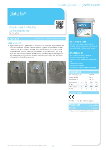 edilen hamur kıvamındaki harç bekletilmeden kullanılmalıdır. Uygulama alanındaki delik, su basıncını kısımların tamirinde ve doldurulmasında kullanılır.