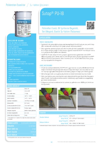 suya ve korozyona karşı güvenle kullanılır. • “SUTOP® PU-1B” beton, betopan vb. emici yüzeylere uygulanacak ise, uygulanmadan önce SUTOP®