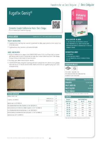 * Diğer ölçü ve derz dolgu tüketim hesaplaması için sayfa 92’ye bakınız