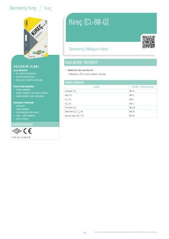 • Demir - Çelik sanayiinde Serbest Kireç (CaO) (%) Min 65