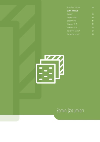 Ürün Öneri Tablosu 48 ZEMİN ÜRÜNLERİ Şapser® 49 Şapser® Rapid 50 Şapser® Plus 51 Floorser® 3-15 52 Floorser® 3-30 53 Surfacefix Kuvars® 54 Surfacefix Korunt® 55 Zemin Çözümleri
